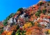 国指定名勝の古岩屋です。周辺の森林内を散策できる遊歩道が整備されており、紅葉狩りの名所として親しまれている。古岩屋から少し離れた場所にある四国霊場第45番札所「岩屋寺」でも、礫岩峰と紅葉のコントラストが楽しめます。