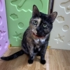 ・メス猫/若年/中型/顔はクリームと黒のツートン。体は茶色と黒のまだらなサビ猫。