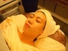 肌に合わせたパックを首元まで手で丁寧に塗っていただき、ひと休みした後ゆっくりとコットンで落としていきます。
