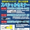 令和元年SHARP 夏の大記念祭 スペシャルセミナースペシャルセミナーを開催いたします‼ ◆ 日程 令和元年 7月26日 金曜日 ◆ 会場 松山市総合コミュニティセンター 企画展示ホール 2階 ◆ セミナー内容 【第1回目 11:00~11:45】 プラズマクラス…2019/07/19
